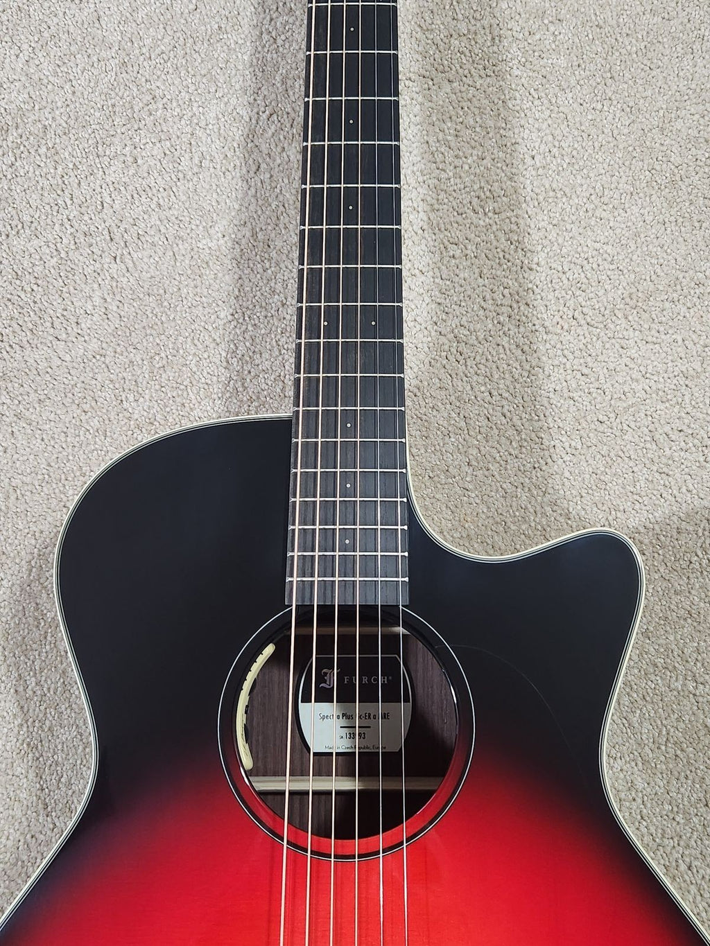 The Spectra Plus ER is treated with Furch’s Full-Pore High Gloss Finish. This radiant sheen is balanced by the natural, tactile feel of the back and sides, preserved through their Open-Pore Finish that highlights the wood’s organic texture.
