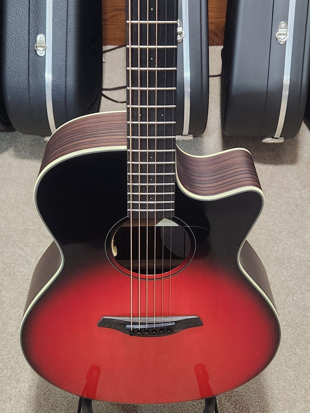 Featuring an individually voiced solid Engelmann spruce top paired with solid Indian rosewood back and sides, the Spectra Plus ER Maranello Red offers a versatile, articulate tone with impressive resonance and a well-balanced acoustic response—perfectly complementing its bold visual design.