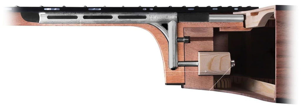 ·Redesigned heel-to-fingerboard structure improves neck heel stability and transfers string tension to the expansive element and adjustment screw. Its length and rigidity ensure optimal neck geometry and excellent playability.