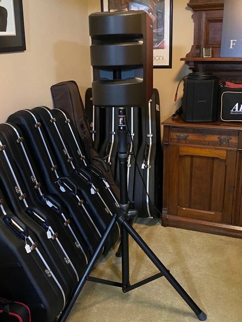 This Synapse has been gently used in the shop a few times for customers to try guitars and is in like new condition. It comes with a carry bag, and an Ultimate Support Air-Powered Series® Lift-assist aluminum tripod speaker stand with Integrated Speaker Adapter, and an Ultimate Support Bag-90 for the stand. The Ultimate Support Stand has some scratching in it.